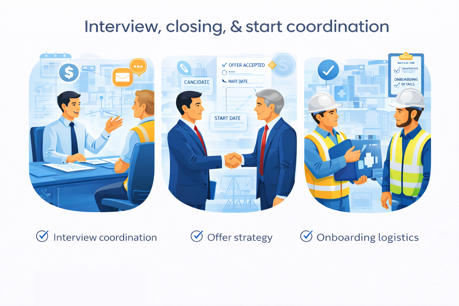• Agree on timeline, interview plan, and offer parameters to avoid delays.